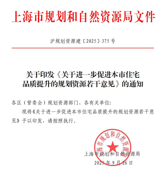 上海住房市场再迎新规。记者9月27日从上海市规划资源局获悉,《关于进一步促进本市住宅品质提升的规划资源若干意见》已于近日出台。