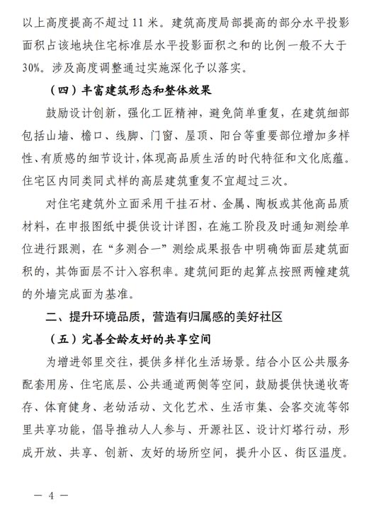《若干意见》在阳台、架空层、建筑立面方面的计容标准有新变化。上海住房新规落地后,一线城市已全部调整放宽计容规范,带来未来居住舒适度的全面升级。